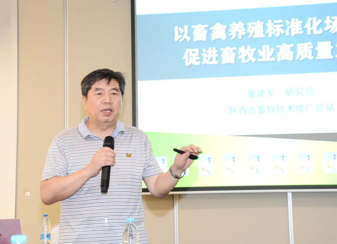 童建军研究员为大家讲授了《以畜禽养殖标准化场创建促进畜牧业高质量发展》,重点解读了“高质量发展”、“标准化”等概念的要义,畜禽养殖标准化示范场建设现状作了分析和展望,并围绕畜禽品种良种化、技术应用标准化、生产管理规范化等多方面进行了深度阐述。他强调健康养殖的核心应该是在畜牧生产全过程中要紧密围绕人类和畜禽健康、环境保护来组织生产。